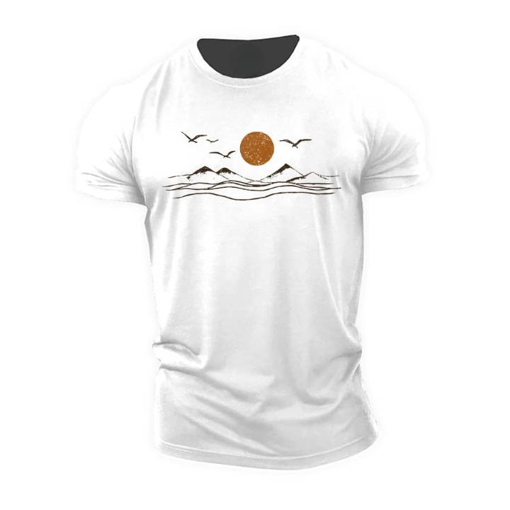 Élevez votre tenue quotidienne ou de sport avec notre T-shirt Vue sur la Rivière au Lever du Soleil. Avec sa coupe flatteuse au niveau des bras et de la poitrine, il met en valeur votre silhouette, tandis que son ourlet plus long et plus ample offre un confort maximal et une liberté de mouvement. Les imprimés graphiques uniques font de ce T-shirt un excellent choix aussi bien pour la salle de sport que pour le quotidien.